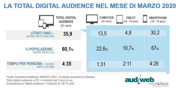 Audiweb, total digital audience di aprile: raggiunti 41,9 milioni di utenti unici