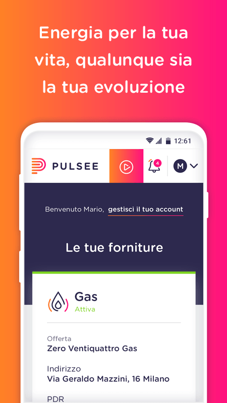 Inoltre, attraverso l’app Pulsee, scaricabile gratuitamente da App store e Google Play, è possibile controllare, ed eventualmente modificare, le proprie offerte anche in mobilità, monitorare i consumi, cambiare il metodo di pagamento, visualizzare e scaricare le bollette, inviare l’autolettura e attivare nuovi servizi. Pulsee è digitale al 100% anche nei pagamenti: è possibile associare alla propria fornitura un conto corrente o una carta di credito, ma anche Google Pay e Apple Pay.