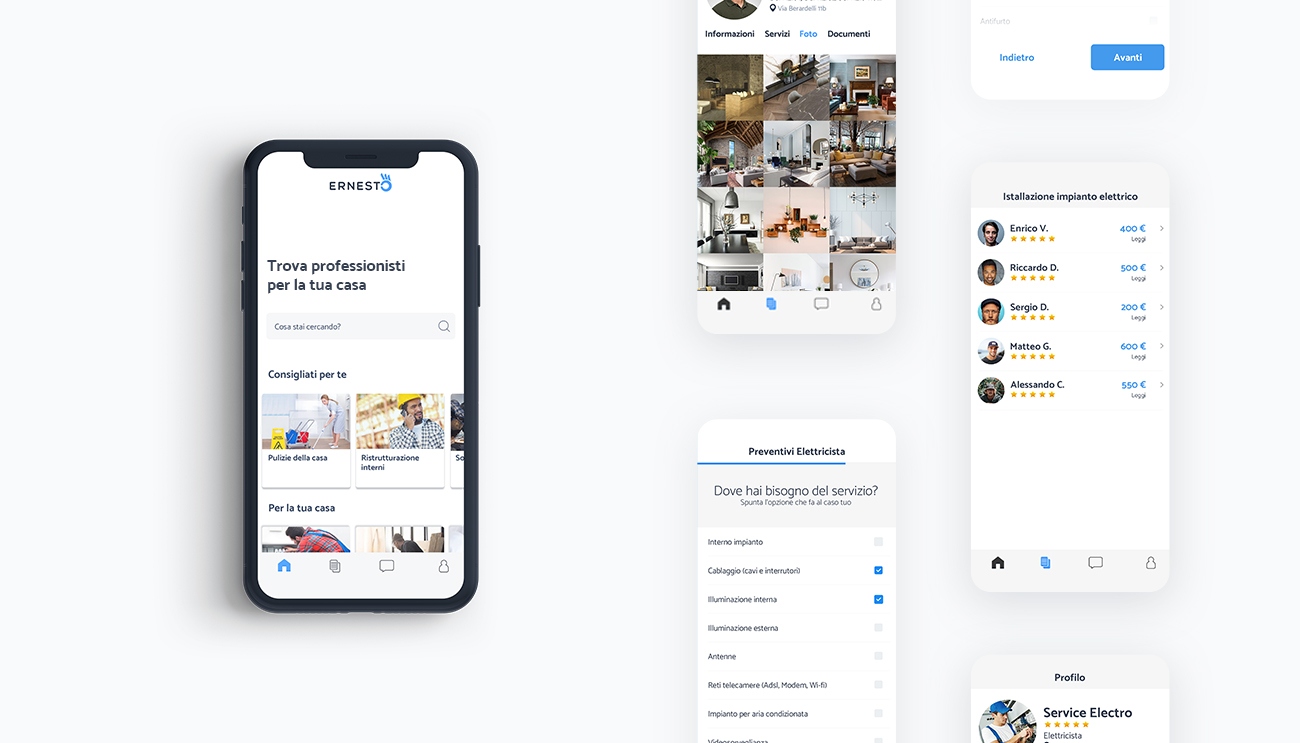 È tutto iniziato con un tubo rotto nel 2017. Ero solo a casa e mentre stavo provando a montare una mensola in bagno, per sbaglio ho preso un tubo e l’acqua è iniziata a schizzare via dal muro come in un film comico. Non sapevo come dirlo a mia madre e quindi ho provato a sistemare il danno con mezzi propri. In quel momento mi sono accorto che non avevo idea di chi contattare, come ottenere un preventivo e non sapevo sulla base di cosa scegliere il professionista più adatto alle mie esigenze. L’idea del nome Ernesto mi è venuta in mente pensando a mio nonno che mi raccontava di un compaesano di nome Ernesto che era l’uomo di fiducia di tutti, a cui tutti si rivolgevano per avere aiuti di qualunque tipo.