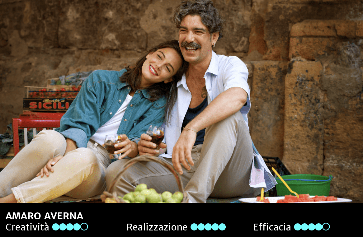 Molto ben riuscito anche lo spot dell’Amaro Averna che con “Open Sicily” ci catapulta in una Sicilia che abbandona la fermezza alle tradizioni per muoverle verso la modernità. Aspetto ben rappresentato dal vestito nero lasciato al vento. Dal punto di vista estetico e visivo tutto lo spot è notevole. I passaggi tra realtà e rappresentazioni metaforiche, dettagli e campi lunghi, staticità e dinamismo sono molto moderni e strizzano l’occhio al linguaggio veloce e a caccia di straordinarietà di TikTok. Le scene di consumo del prodotto non sono invasive e ben si sposano nell’insieme, così come la rappresentazione della bottiglia è perfettamente integrata nello spot. Penso che il montaggio sia uno dei più moderni e ben riusciti di quest’anno, molto particolare e di difficile interpretazione.