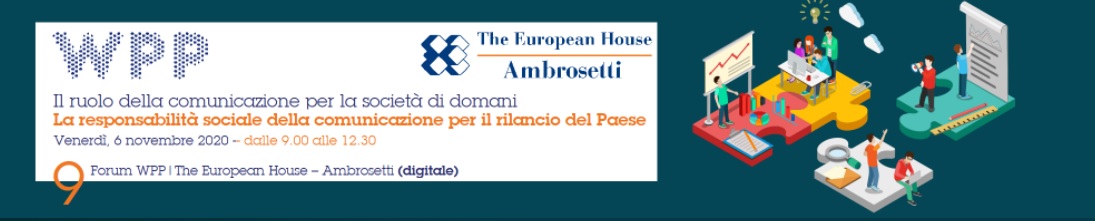 Torna, in formato completamente digitale, l’appuntamento con Forum WPP|The European House – Ambrosetti, giunto alla nona edizione, che è in programma venerdì 6 novembre a Milano dalle ore 9.30 alle 13.00. Titolo della nuova edizione, la prima dell’era post Massimo Costa, è “La responsabilità sociale della comunicazione per il rilancio delle imprese”.