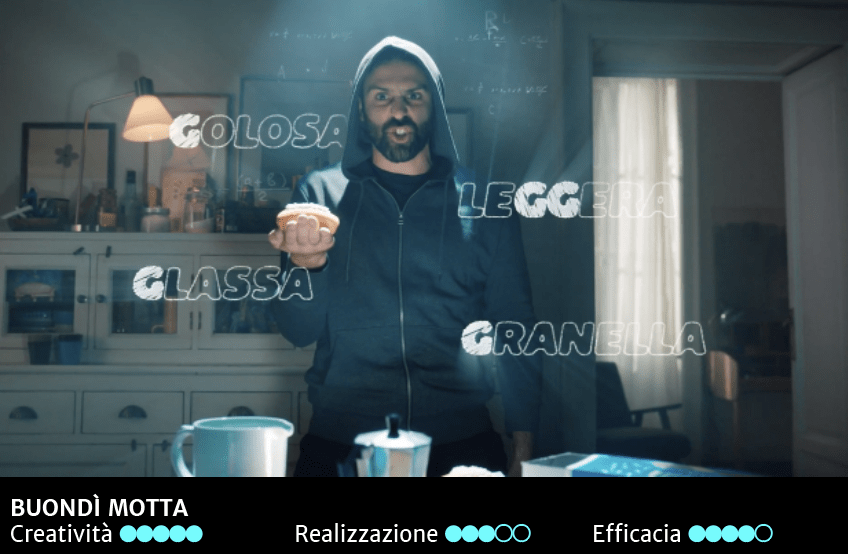 Partiamo da Buondì Motta che prosegue il filone del surrealismo partito con la riuscitissima pubblicità del meteorite che colpisce i genitori della giovane ragazzina che, tra le altre cose, parla come se fosse posseduta dal demonio. L’idea parte dal fenomeno attualissimo dei cospirazionisti. Ecco che durante la colazione familiare appare il personaggio con l’ipotesi assurda delle 5G o del “buondìpiattismo”. Molto bello il cambio di luci sull’ipotesi strampalata e la scelta di continuare sull’onda del surrealismo con la comparsa, appunto surreale, del complottista che viene liquidato senza sorpresa e con sufficienza dalla famiglia. Una creatività rinnovata e che supera di gran lunga lo spot passato sulla deficienza artificiale che partiva, sì, da un’idea forte, ma che in qualche modo risultava non abbastanza surreale confronto ai precedenti, zombie compresi naturalmente.