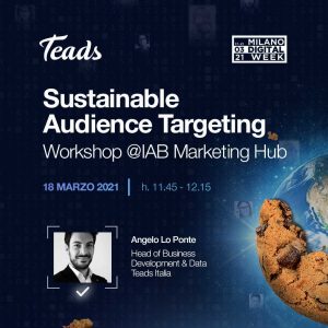 Teads, The Global Media Platform, partecipa anche quest’anno alla Milano Digital Week con un workshop dedicato alla suite di soluzioni di audience e contextual targeting per la profilazione degli utenti in ambienti in cui non è più possibile l’utilizzo dei cookie di terza parte. Il workshop, che si terrà domani alle ore 11:45, è organizzato all’interno del IAB Marketing Hub, la giornata dedicata alle principali tematiche dell’online advertising e agli strumenti di digital marketing più innovativi. In questa sessione live Teads presenta le soluzioni di Audience e Contextual Targeting sviluppate per supportare advertiser e brand nella transizione cookieless e guidare alti livelli di precisione ed efficacia media anche senza l’utilizzo dei cookie di terza parte. Angelo Lo Ponte, Head of Business Development & Data di Teads Italia racconterà come è possibile soddisfare circa l’80% delle esigenze di audience targeting dei brand e advertiser con una precisione demografica del +30% rispetto a tutti i benchmark di industry sfruttando tecnologie predittive di targeting cookieless. «Teads è naturalmente preparato a questa nuova era del digital advertising per molte ragioni. Una su tutte: le collaborazioni esclusive con publisher premium su larga scala – afferma Lo Ponte -. Il nostro modello di business si basa sulle integrazioni dirette con i più importanti e prestigiosi editori a livello mondiale e questo ci permette di avere un vantaggio competitivo unico sul mercato. Inoltre il nostro continuo sviluppo tecnologico guidato dall’innovazione ci permette di essere in prima linea per rispondere in maniera sempre altamente qualitativa alle evoluzioni del mercato generando nuove opportunità concrete per i nostri partner a partire da sfide, come quella del cookieless».