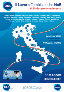 Con il motto “Il Lavoro Cambia anche Noi!” in occasione della Festa del Lavoro parte il tour nazionale dell’UGL, dal 9 aprile al Primo Maggio, 30 tappe da Nord a Sud Italia. È con questa filosofia che il sindacato ha deciso di rivendicare la centralità del lavoro andando a incontrare, a bordo di un autobus, i lavoratori nelle piazze, nelle fabbriche e nelle realtà produttive di tutto il Paese. L’obiettivo del sindacato è quello di raggiungere nei singoli territori i propri iscritti, i dirigenti, tutti i lavoratori che, in questa fase così delicata della pandemia da Covid-19, non possono recarsi fisicamente a Roma per festeggiare il Primo Maggio insieme.