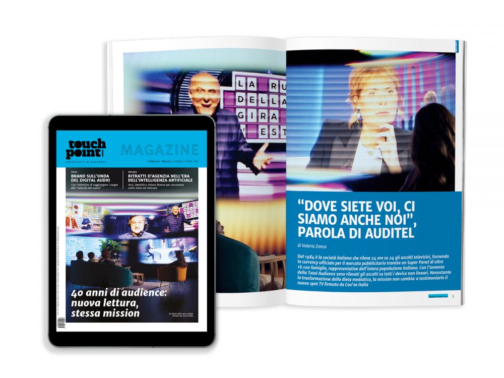 Oltre La Media Group per essere sempre vicina ai suoi lettori mette a disposizione gratuitamente l’ultimo numero di Touchpoint Magazine in formato digitale. Il mensile di Agosto-Settembre è disponibile in una doppia versione, PDF e sfogliabile. Questo mese non perdetevi il Focus dedicato alla Live Communication e lo Speciale sui palinsesti d’autunno. Protagonista della nostra cover story Marco Di Guida, AD del Gruppo Crédit Agricole Assurances Italia.