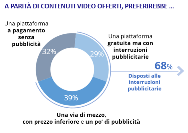 Sensemakers stima che gli spettatori medi giornalieri di Netflix siano 5 milioni e 20 milioni quelli mensili. Alla prima domanda del sondaggio “A parità di contenuti offerti, preferirebbe?” gli italiani hanno risposto: Una piattaforma a pagamento, senza pubblicità 32%; Una piattaforma gratuita, con interruzioni pubblicitarie 29%; Una via di mezzo, con prezzo inferiore e poca pubblicità 39%. Il 68% degli utenti potrebbe accettare un abbonamento con interruzioni pubblicitarie.