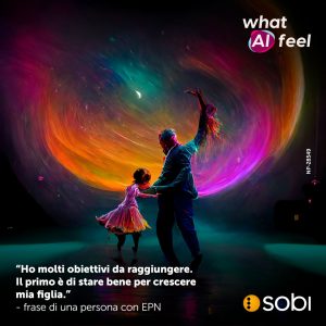 Queste e altre parole di persone con EPN sono state la fonte d’ispirazione che ha dato corpo, con artwork unici, a “what AI feel”, la campagna promossa da Sobi, ideata e curata dall’agenzia di comunicazione BB&C Group, che vede il suo sviluppo on e off line, dalla comunicazione digitale e social ad affissioni nella città di Milano dal 9 al 22 ottobre 2023. Il profilo Instagram di Sobi Italia sarà la casa digitale del progetto, punto di raccolta di tutti i contenuti visual della campagna.