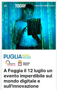 L’evento “Puglia Digital House”, si svolgerà il 12 luglio, nella città di Foggia, presso la Sala Fedora del Teatro Umberto Giordano. Sarà possibile seguire l’incontro anche in diretta streaming.
