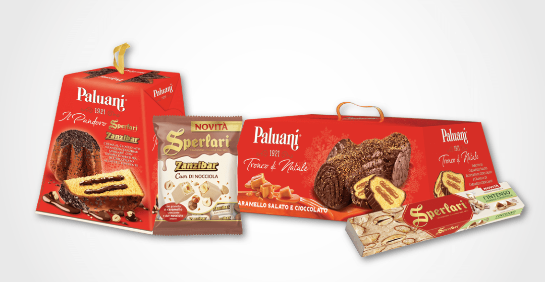 Tra le novità di casa Paluani c’è il Pandoro Farcito Sperlari Zanzibar, un prodotto che rappresenta l’emblema di “Insieme è più Natale” e dell’unione dei due brand: un pandoro Paluani farcito con una crema di gianduia Zanzibar, torrone icona del brand Sperlari, ricoperto di cioccolato e scagliette di cioccolato fondente. Inoltre, il Tronco di Natale Paluani, referenza iconica del brand, si rinnova in una versione al caramello salato.
