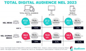 Audiweb Total digital audience: 44,2 milioni di italiani online a dicembre 2023