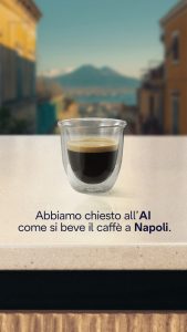 Il concept della campagna parte dall’idea di “Un Perfetto, per favore”, che rappresenta l’esperienza completa e personalizzata offerta da De’Longhi. Una creatività fondata su quattro elementi chiave che contraddistinguono l’anima e il DNA del brand: la quality assurance cioè la garanzia di qualità che promette un risultato perfetto in ogni tazza, evidenziando l’impegno del brand per l’eccellenza. La product celebration dove la macchina del caffè è vista come uno strumento fondamentale per creare esperienze uniche. L’individual experience che riconosce l’unicità delle preferenze e dei gusti di ciascun consumatore. E, infine, la cultural experience per esplorare l’anima italiana del caffè, evocando tradizioni e gesti che fanno parte della nostra cultura. Nei prossimi mesi, la campagna guiderà la comunicazione del brand, focalizzandosi sull’italianità e sull’arte del caffè. Un ruolo chiave lo gioca proprio la cultural experience: la cultura italiana è basata su tradizioni, abitudini, cliché diversi da regione a regione e, partendo proprio da questo presupposto, è stata impostata la campagna illustrata attraverso contenuti che chiedono all’intelligenza artificiale di descrivere come gli italiani bevono il caffè a Napoli e Milano.