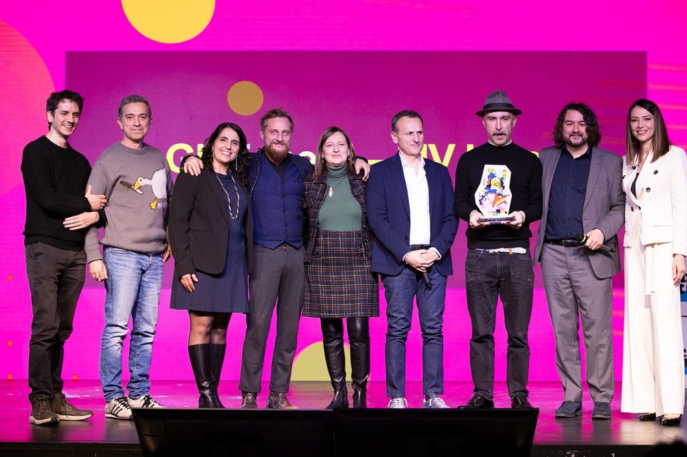 Nel corso della serata organizzata da Oltre La Media Group, oltre al trofeo disegnato dal Maestro Ugo Nespolo, sono stati consegnati i 16 Premi di categoria, rappresentativi delle eccellenze del panorama della comunicazione italiana, oltre all’assegnazione di tre Menzioni Speciali da parte della giuria.