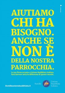 4 Verità: “Prima verità: per destinare l’8xmille all’Unione Buddhista Italiana non c’è bisogno di essere buddhisti. Seconda verità: non c’è bisogno di essere buddhisti nemmeno per ricevere i fondi a sostegno dei progetti. Terza verità: l’Unione Buddhista gestisce i fondi in modo trasparente. Quarta verità: La tua firma accanto a Unione Buddhista Italiana farà davvero tutta la differenza di questo mondo.”