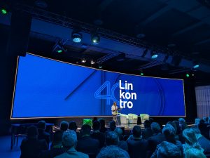 Nell’ultimo slot del convegno, “Attraverso il tempo – Racconti, immagini, voci”, si sono confrontati Mario Calabresi, CEO ed Editor in Chief di Chora Media e CEO di Will Media e Luca Bizzarri, attore e scrittore: ospite a sorpresa il tennista Adriano Panatta. Calabresi ha esordito infatti ripercorrendo la storia de Linkontro, nato come torneo di tennis tra produttori e distributori, con l’idea che lo sport potesse cementare amicizie e risolvere inimicizie. «Alla prima edizione al Forte Village era presente Nicola Pietrangeli. E la conduttrice quell’anno era Licia Colò: nacque un grande amore che durò sette anni» ha raccontato Calabresi.