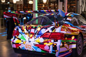 Otto vetture iconiche – tra le venti Art Car realizzate nel corso di cinquant’anni – sono state presentate all’interno di un set up dedicato al rapporto tra processo creativo e progetto industriale. Le auto, reinterpretate da grandi protagonisti dell’arte contemporanea come Julie Mehretu, Jeff Koons, Jenny Holzer, Sandro Chia, Esther Mahlangu, Roy Lichtenstein, Frank Stella e Alexander Calder, offrono uno spaccato dell’evoluzione artistica dal minimalismo alla pop-art, dal realismo magico all’astrattismo, fino all’arte concettuale e digitale.