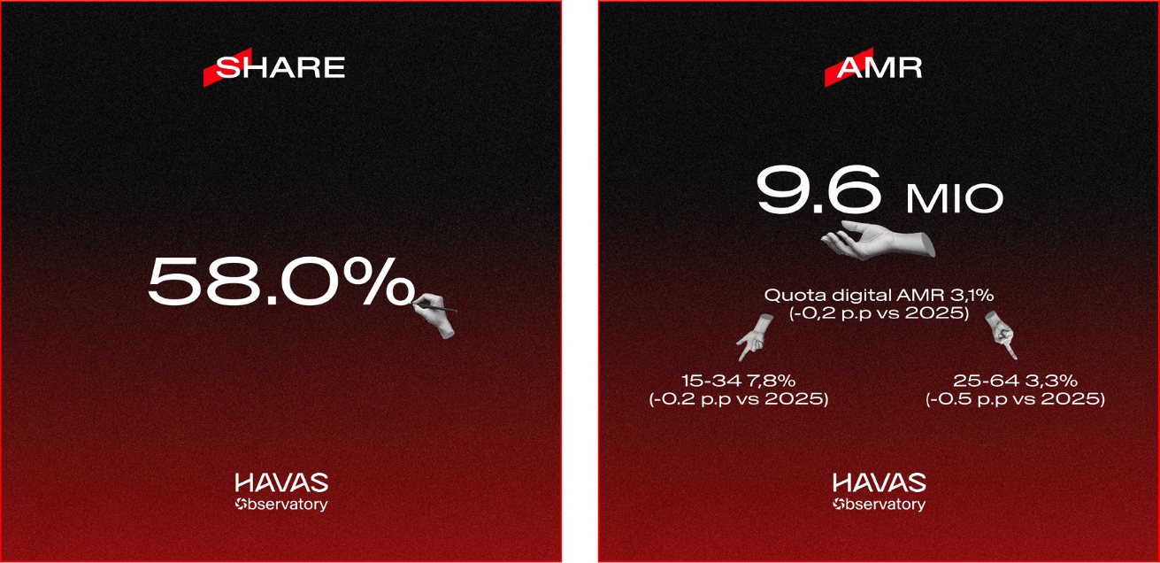 Pur in un contesto di rallentamento degli ascolti, il debutto di Sanremo 2026 conferma la sua forza e capacità di catalizzare l’attenzione del Paese, evolvendo insieme alle nuove modalità di consumo e ai comportamenti digitali di una community sempre più ampia.