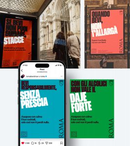La creatività gioca con i motti romani per valorizzare lo slow-drinking, la guida sicura e il trend dei drink No e Low alcohol, declinando il messaggio in quattro soggetti: